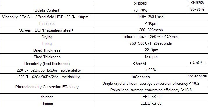 LEED SN928X is an environmental conductive paste designed on silicon solar cell(n+) positive electrode.The conductive component in silver paste will be the excellent ohmic contact characteristics with silicon and have good compatibilities with back aluminium paste when co-fired.It has the features of good printing,low contact resistance,good solderability and weldability.